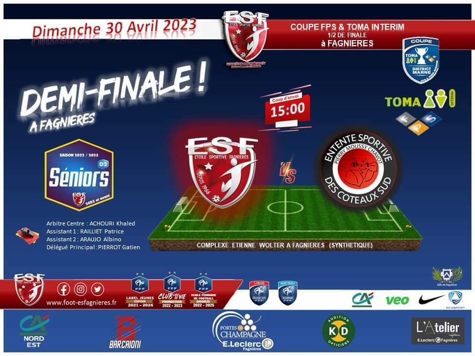 ⚽️ 𝐒𝐄𝐍𝐈𝐎𝐑𝐒 𝐃𝟐 ➡️ DEMI-FINALE de Coupe FPS& TOMA Intérim District Marne de Football face à Coteaux Sud.