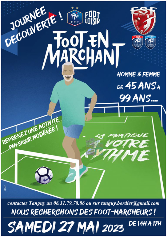 Dans le cadre du Brevet Professionnel de la Jeunesse, de l’Education Populaire et du Sport mention Activité Pour Tous, Tanguy organise une manifestation sportive le 27 mai (journée découverte foot en marchant) de 14 à 17h00 !