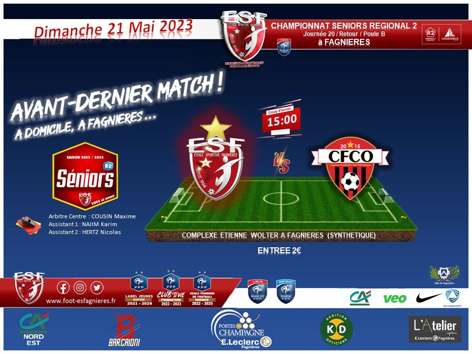 Nos Champions sont de retour ce week end pour la 1ère fois à Fagnières après l'obtention de leur titre & après 3 matchs à l'extérieur avec autant de victoires pour un beau Derby au Complexe sportif Etienne Wolter de Fagnières face au Chalons Fco...