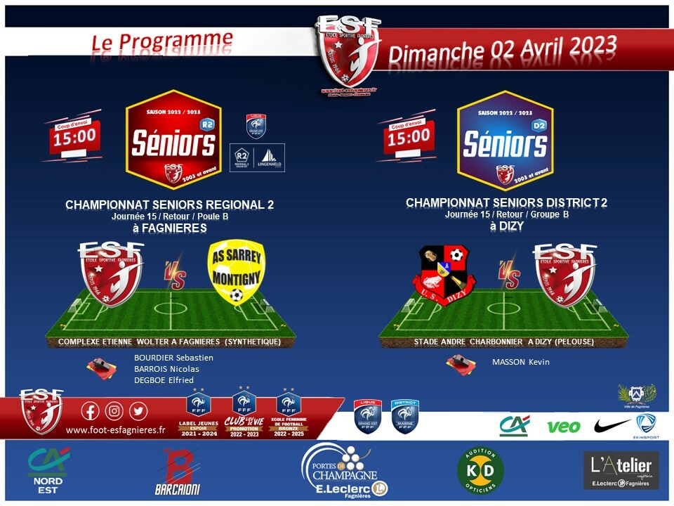Au Complexe sportif Etienne Wolter de Fagnières, sur synthétique, coup d'envoi 15h00, entrée 2€.