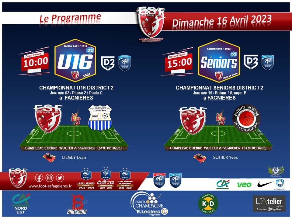 Au Complexe sportif Etienne Wolter de Fagnières, sur synthétique, Coup d'envoi 10h00.