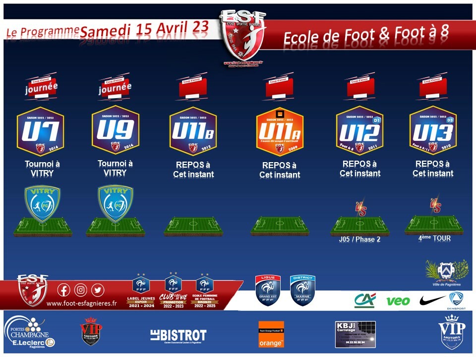 𝐋𝐞 𝐏𝐫𝐨𝐠𝐫𝐚𝐦𝐦𝐞 𝐝𝐮 𝐒𝐚𝐦𝐞𝐝𝐢 𝟭𝟓 𝗔𝘃𝗿𝗶𝗹 𝟐𝟎𝟐𝟑 - 𝐄𝐂𝐎𝐋𝐄 𝐃𝐄 𝐅𝐎𝐎𝐓 & 𝐅𝐎𝐎𝐓 𝐀 𝟖...