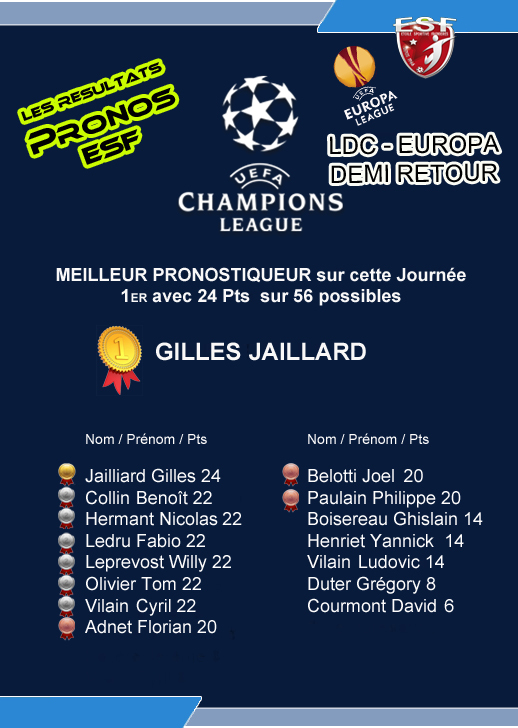 Pour cette Journée de Demi-Finales de Coupe d'Europe, LDC & Europa League Retour :
