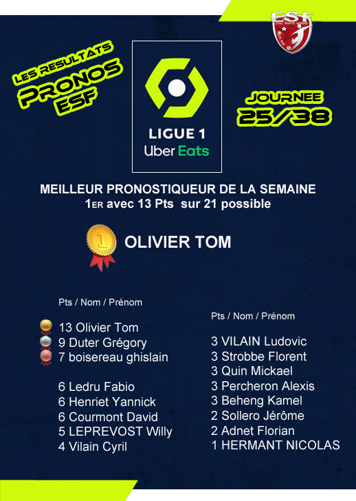 Pour cette journée de Ligue 1 Uber Eats, retrouvez les Résultats de cette journée 25/38 :