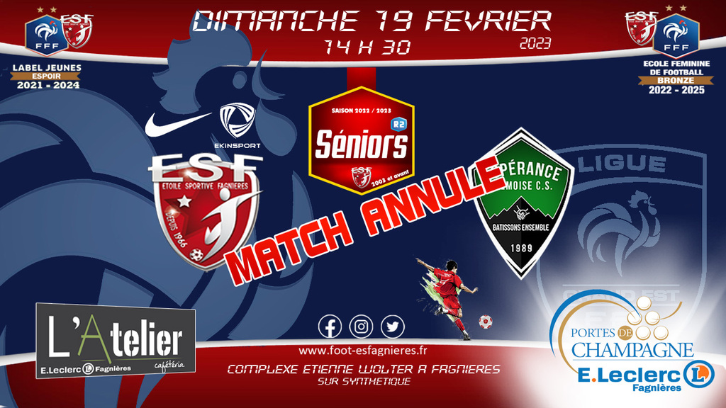 Match Annulé : Séniors R2 vs Espérance Rémoise du 19/02