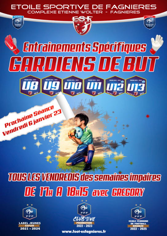 le prochaine entraînement aura lieu le vendredi 06 janvier 2023 à 17h00 au Complexe Etienne Wolter sur terrain synthétique.