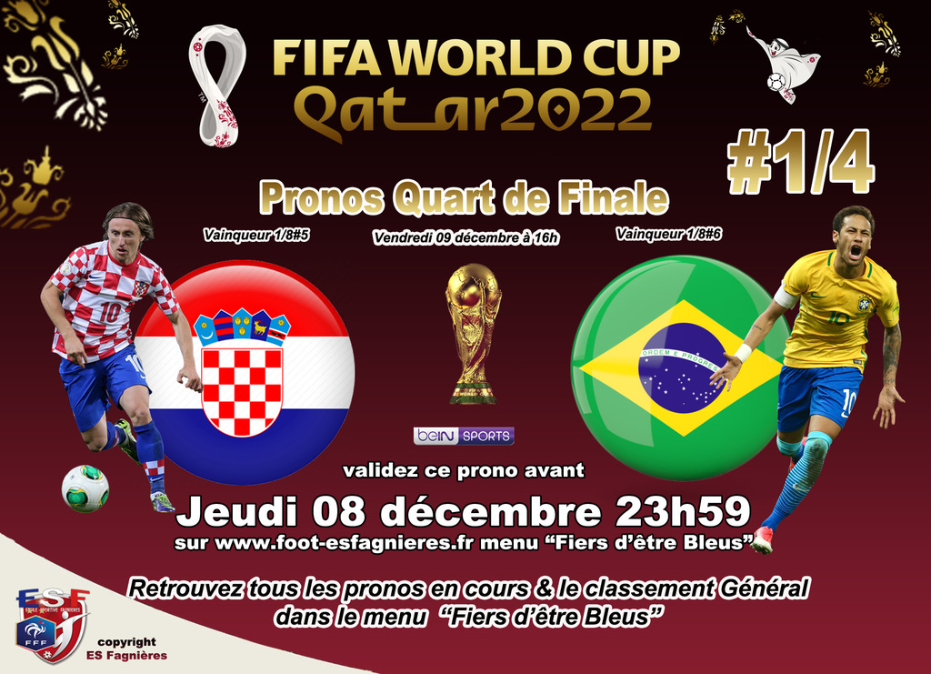 Pronostiquez le 1er quart de finale CROATIE vs BRESIL avant Jeudi 08 décembre 23h59.....