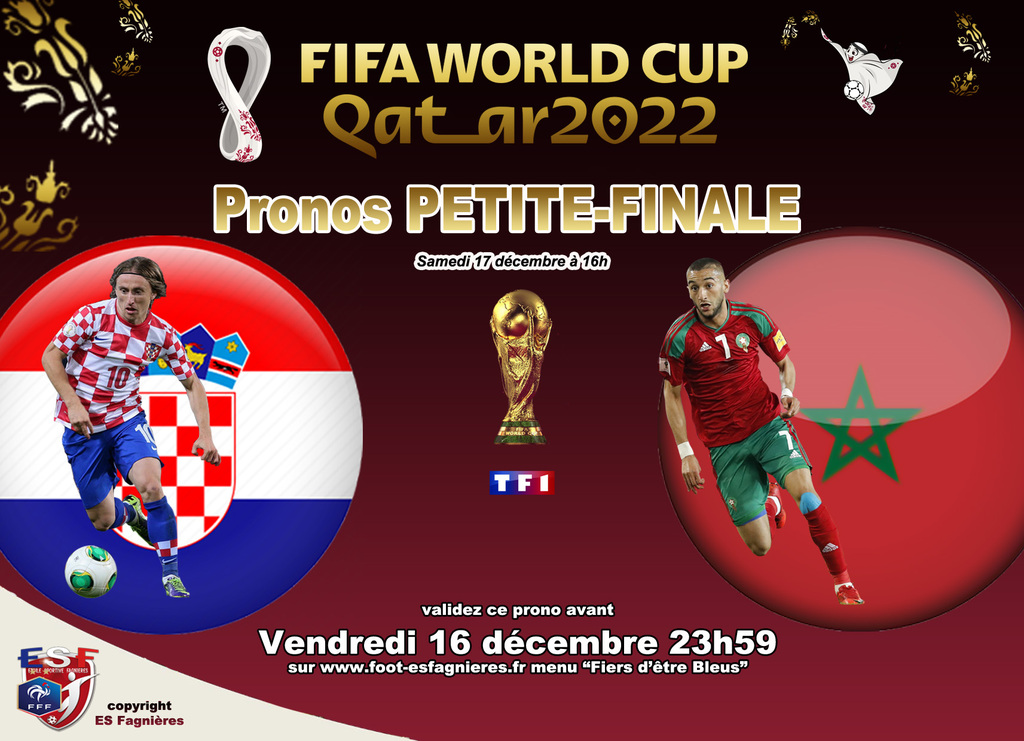 Pronostiquez la petite Finale CROATIE vs MAROC avant le vendredi 16 décembre 23h59....