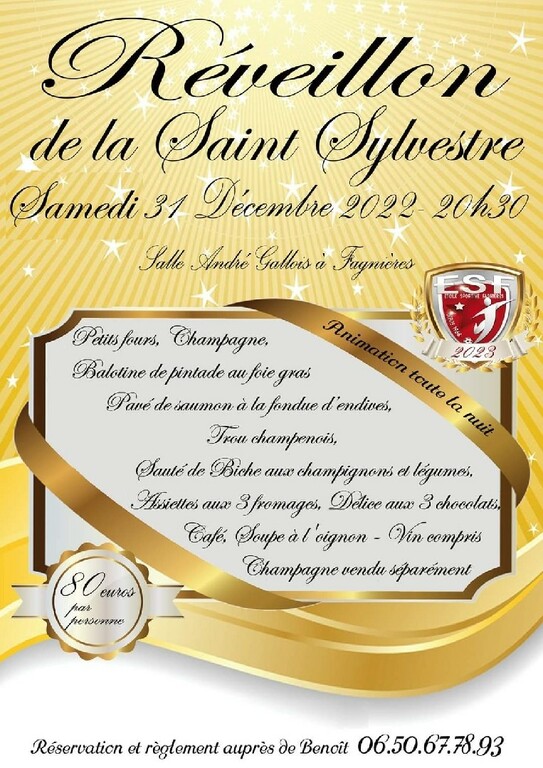 Samedi 31 décembre 2022 à 20h30 à la salle André Gallois de Fagnières.