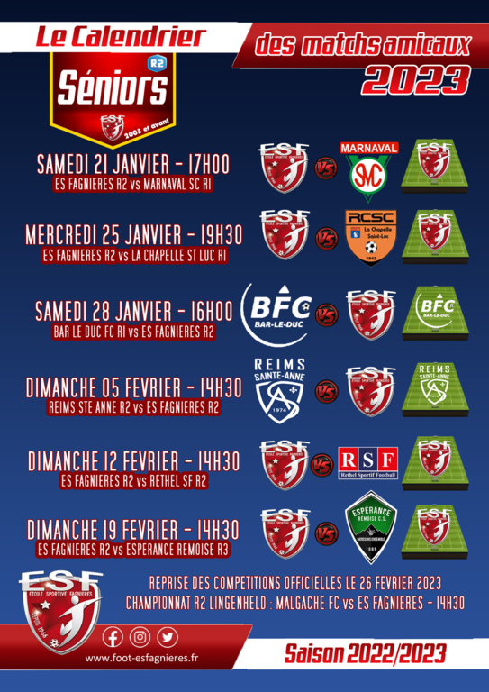 Retrouvez ici le calendrier des matchs amicaux pour le groupe Séniors R2