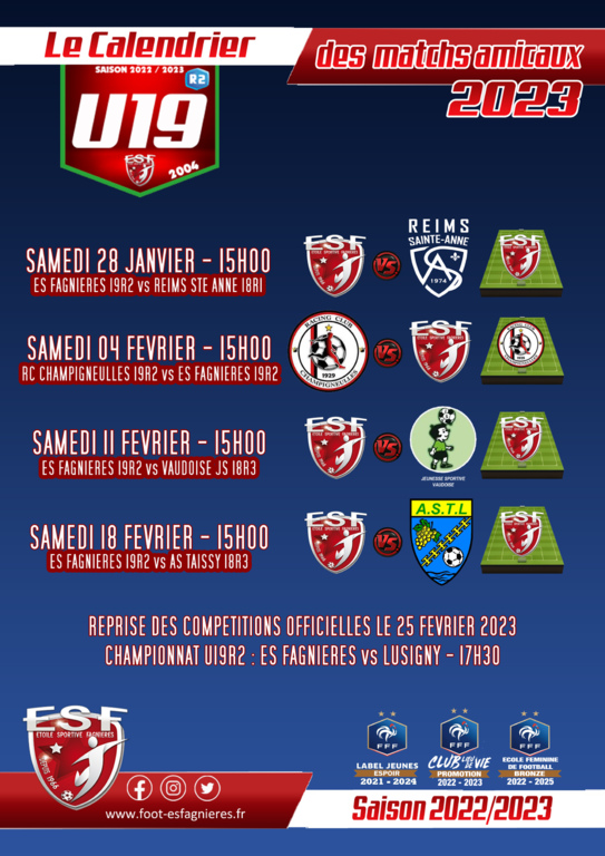 Retrouvez ici le calendrier des matchs amicaux pour le groupe U19R2