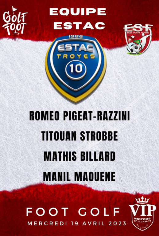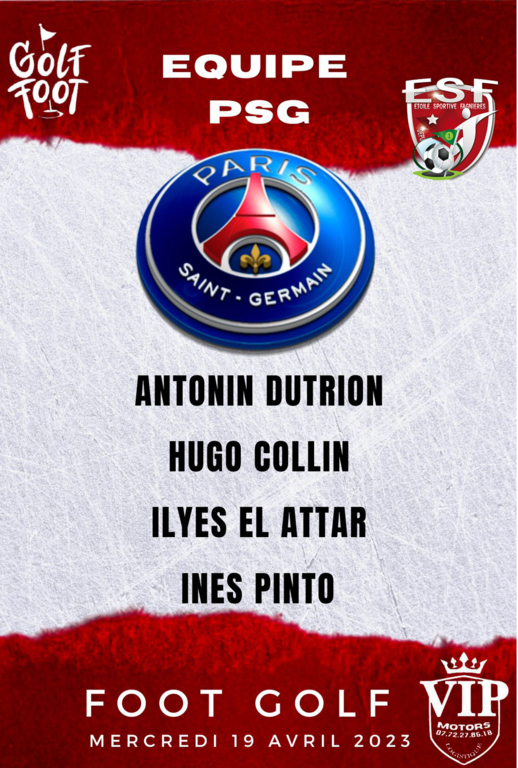 Retrouvez ici la composition des équipes pour le FootGolf du mercredi 19 avril de 13h45 à 16h00...