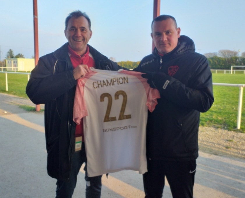 Le CHAMPION des pronos special coupe du Monde 2022, Grégory Duter (a droite sur la photo) s'est vu remettre son prix par notre secrétaire Jean Noël Vincent (a gauche).