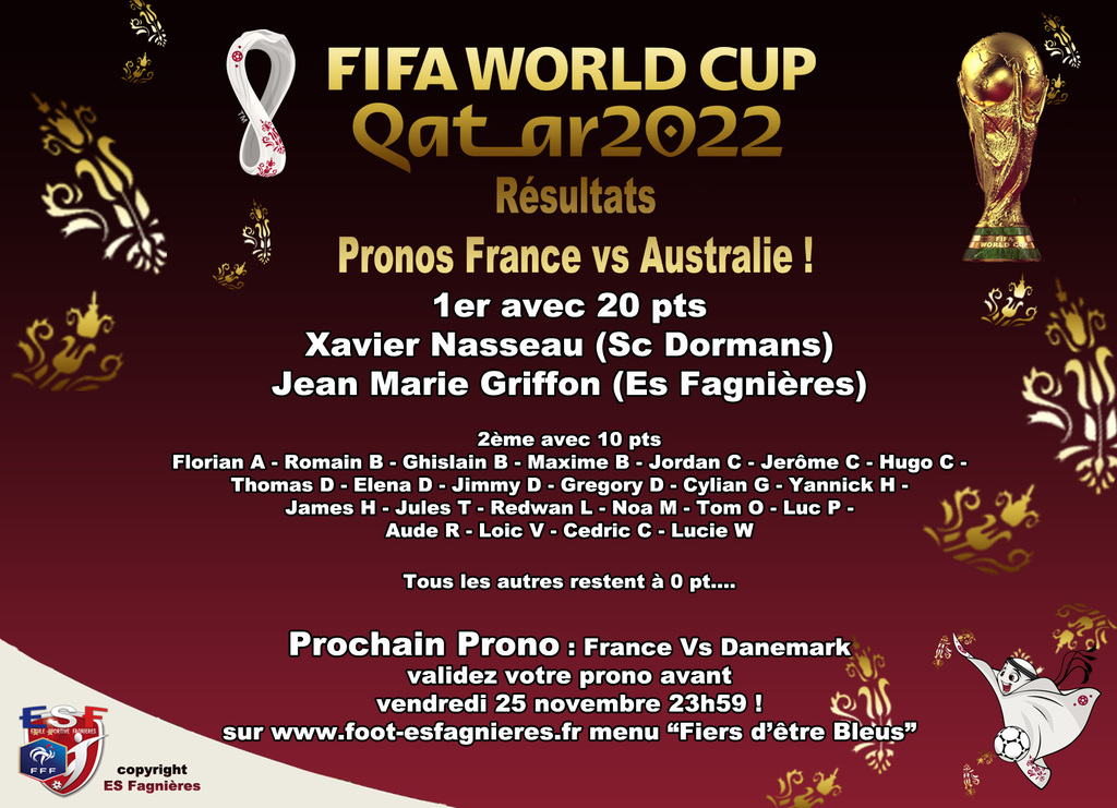 Prochain Prono, vous avez jusqu'au vendredi 25 novembre 23h59, FRANCE vs DANEMARK : https://www.foot-esfagnieres.fr/.../pronostique-france...