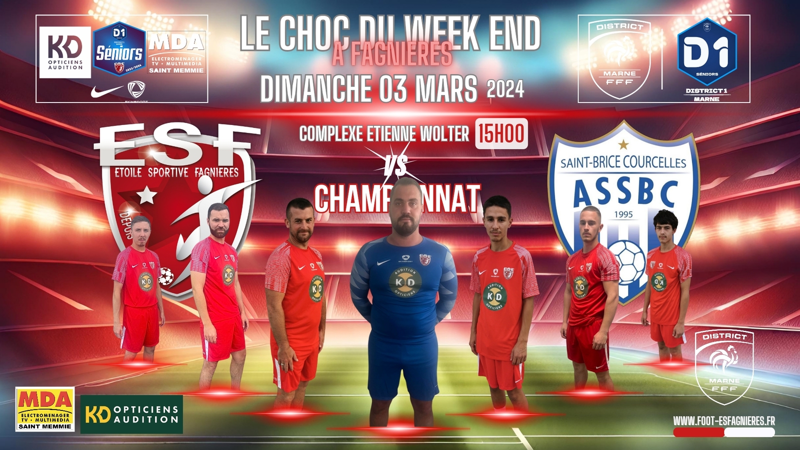 3 gros matchs attendent nos Fagnierots ce Week End dont ๐๐ ๐๐ผ๐๐พ๐ ๐พ๐๐๐พ de la 13eme journรฉe de Championnat Marne pour le Groupe de Jordan Calvy actuellement 3eme au classement avec 17 pts et 2 matchs en retard, face au Leader du Championnat District Marne de Football D1,ย l' As Saint-Brice Courcelles Football (25 pts).