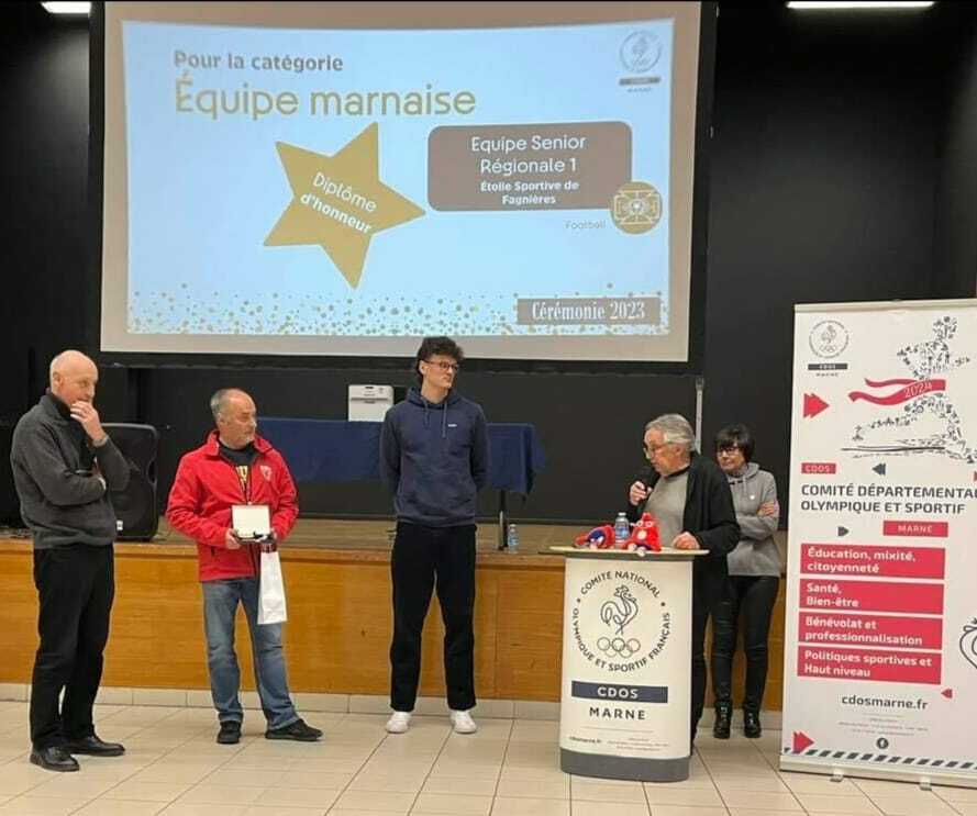 L’ Etoile Sportive de Fagnières, représentée par son Vice Président Eric Vigier, à pu être récompensée d'un diplôme d'Honneur dans la catégorie Equipe Marnaise soulignant l'excellent parcours de l'équipe 1ère et sa remarquable montée en Ligue du Grand Est de Football Champagne/Ardenne Régional 1 Homiris