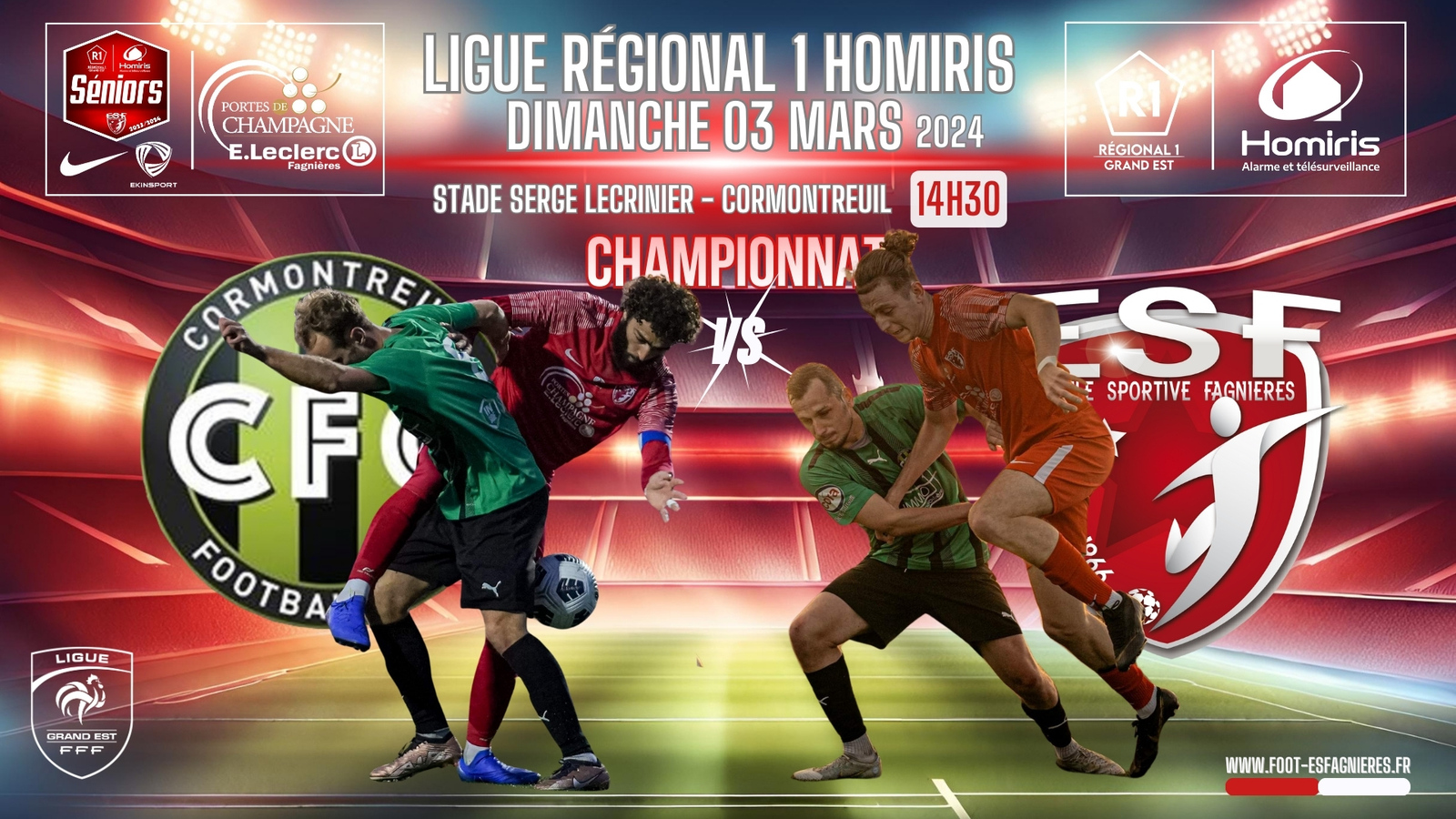 Coup d'envoi 14h30 au Stade Serge LECRINIER a Cormontreuil.
