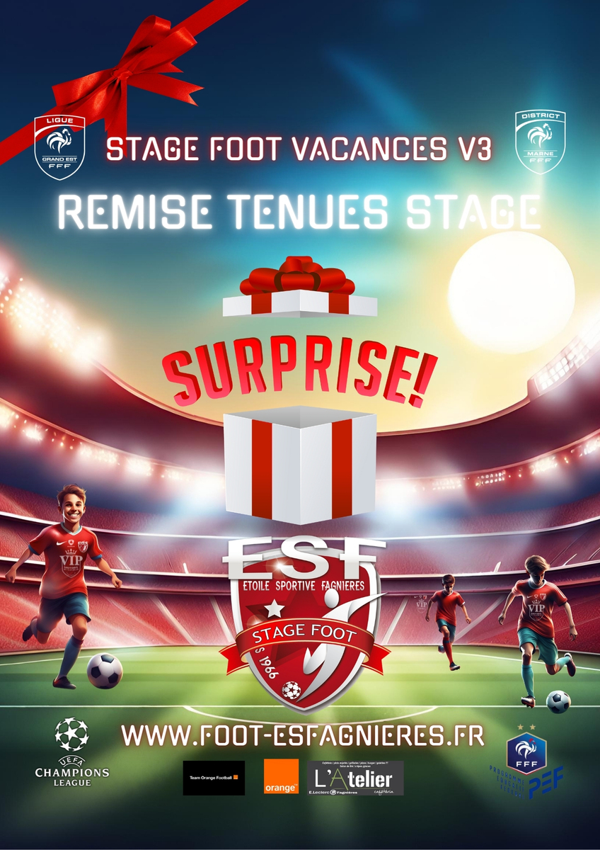 Nous sommes heureux de vous annoncer que la distribution des tenues "cadeau de fin de stage" pour nos stagiaires qui ont participé au mois d'avril au stage V3 seront distribuées ce vendredi 10 mai au complexe Etienne Wolter de Fagnières à partir de 14h, et ce, jusqu'à 16h....