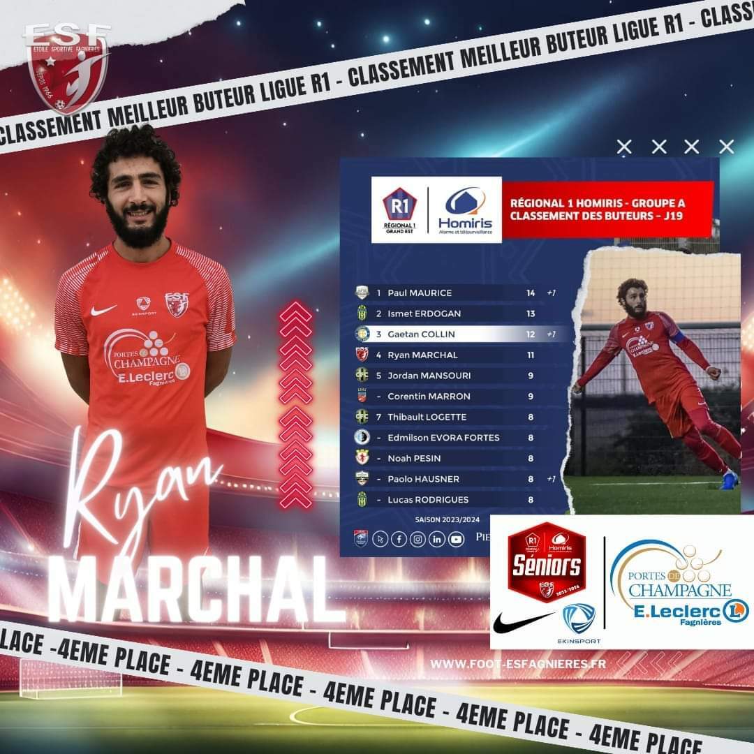 Bravo a notre Cap'taine Ryan qui conforte sa 4ème place et raccroche le trio de tête grâce à son doublé 🎯🎯 de la semaine dernière face a St Meziery.👏👏
