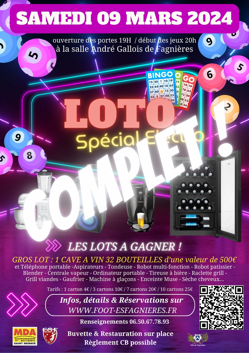 Réservez dès maintenant vos places pour le Loto/Bingo spécial Electro, 𝗹𝗲𝘀 𝗽𝗹𝗮𝗰𝗲𝘀 𝘀𝗼𝗻𝘁 𝗹𝗶𝗺𝗶𝘁𝗲𝗲𝘀..... (ouvert à tout public).