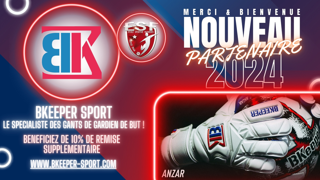 𝐁𝐞𝐧𝐞𝐟𝐢𝐜𝐢𝐞𝐳 𝐝𝐞 𝟏𝟎% 𝐝𝐞 𝐫𝐞𝐦𝐢𝐬𝐞 en passant par l' Etoile Sportive de Fagnières, en nous envoyant un mail sur esfagnieres.football@gmail.com après avoir fait votre choix sur le site www.bkeeper-sport.com