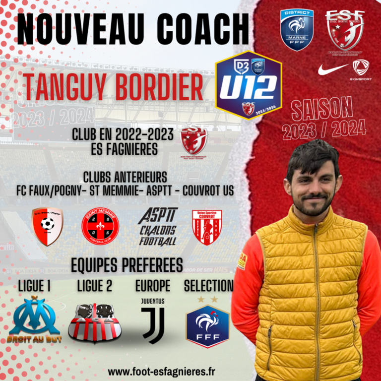 Arrivée la saison passée, et pour ceux qui ne le connaîtrais pas, nous sommes heureux de vous Présenter Tanguy qui sera le Nouveau Coach de la catégorie U12 District Marne D2 cette saison 2023/2024.