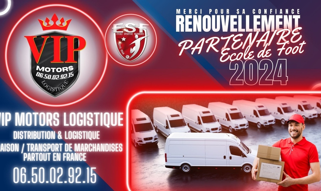 L' Etoile Sportive de Fagnières est heureuse de vous annoncer le renouvellement du Partenariat avec 𝙑𝙄𝙋 𝙈𝙊𝙏𝙊𝙍𝙎 𝙇𝙊𝙂𝙄𝙎𝙏𝙄𝙌𝙐𝙀, Partenaire de notre Ecole de Foot.