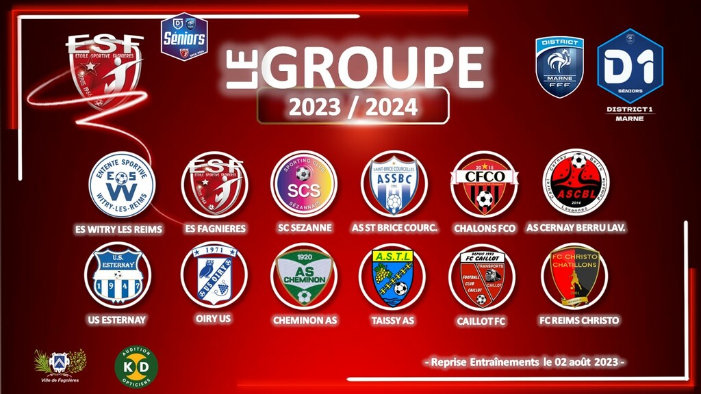 Découvrez sans surprise, le groupe des 12 clubs Elite du District Marne de Football pour le championnat Départemental de la saison 2023/2024.