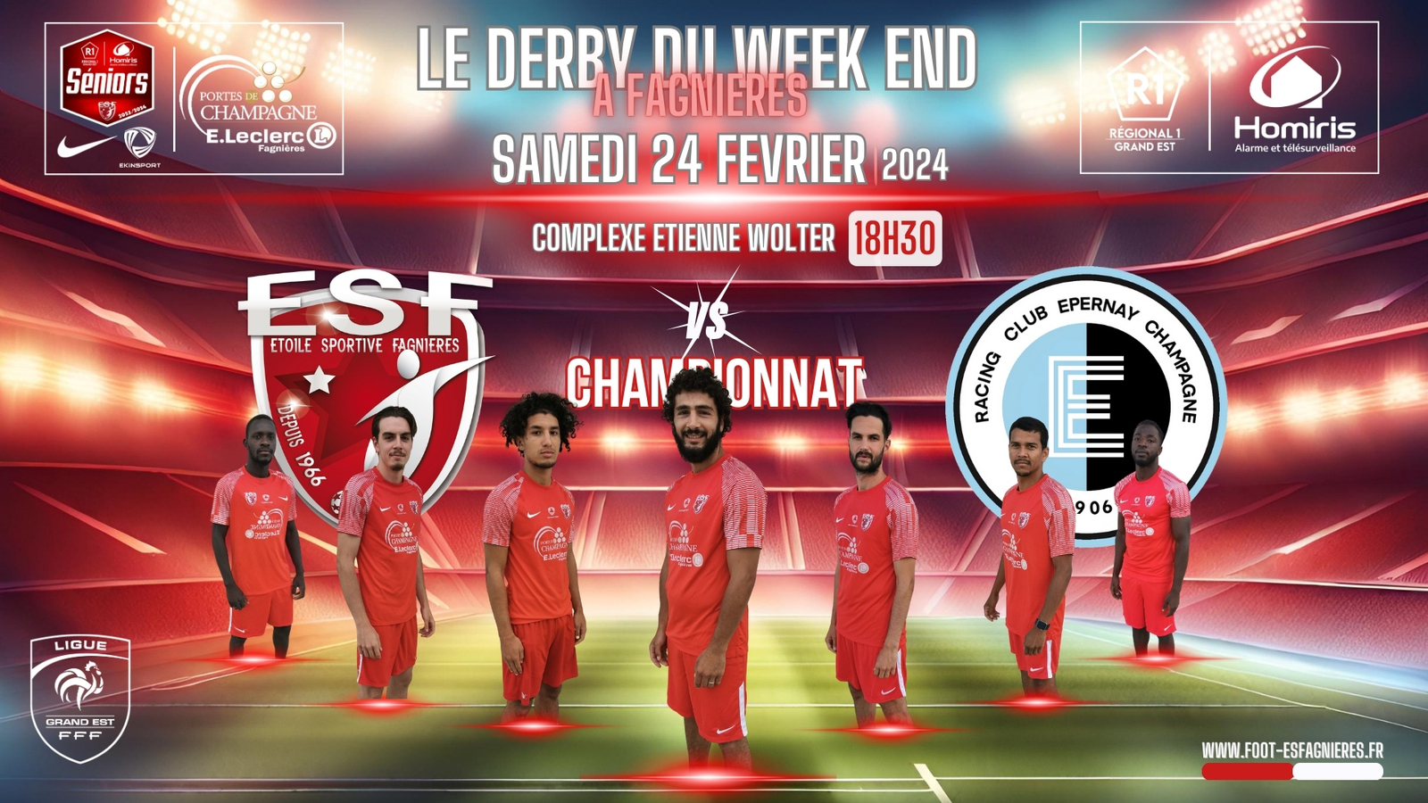 Dans ce Derby Marnais, le Groupe de Jerome Van-Nieuwenhuyse recevra le Racing Club d'Epernay Champagne au Complexe sportif Etienne Wolter de Fagnières pour le compte de la 16ème journée de Championnat Ligue du Grand Est Régional 1 Homiris.