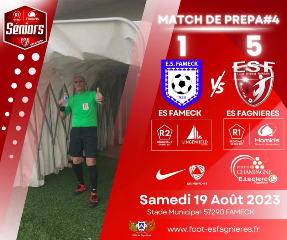 Merci à l' Entente Sportive Fameck Officiel pour l'accueil extraordinaire d'une rare qualité sur de superbes installations, et à qui, nous souhaitons une excellente saison 2023/2024...