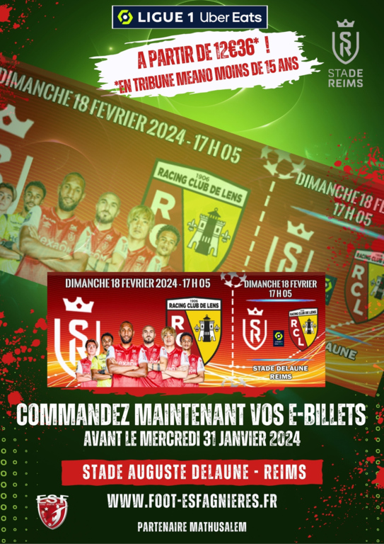 Pour commander, c'est par ici : https://www.foot-esfagnieres.fr/produit/e-billet-stade-de-reims-vs-racing-club-de-lens-70931