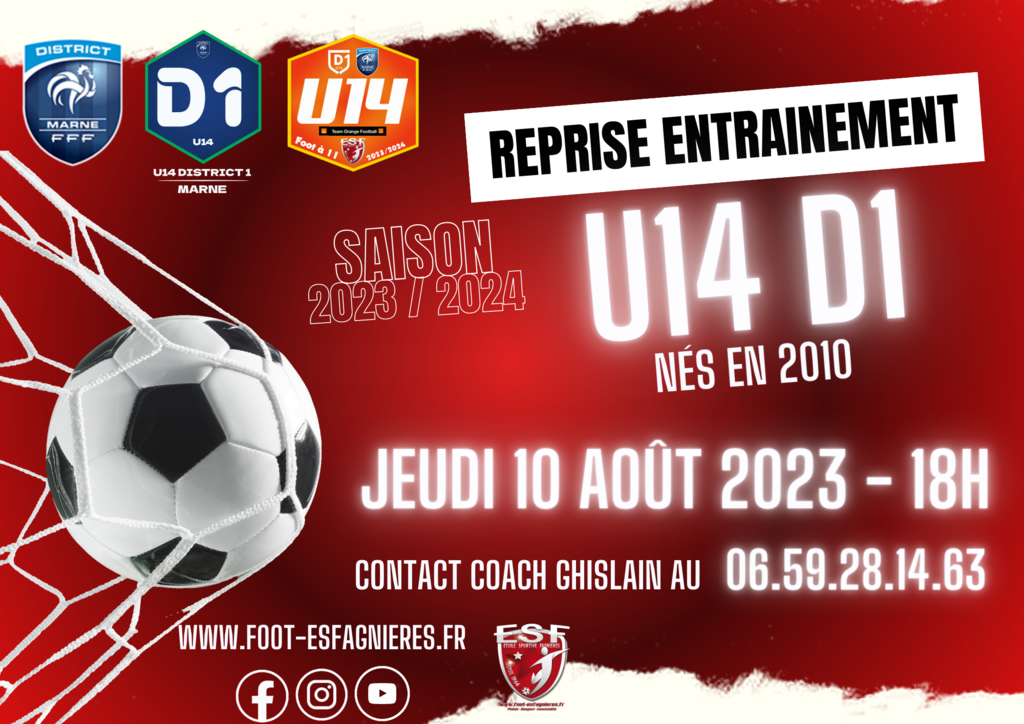 U14D1 - Reprise des Entraînements le Jeudi 10 août....
