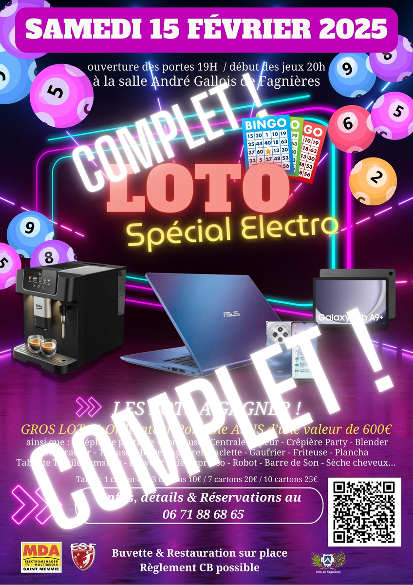 Réservez dès maintenant vos places pour le Loto/Bingo spécial Electro, 𝗹𝗲𝘀 𝗽𝗹𝗮𝗰𝗲𝘀 𝘀𝗼𝗻𝘁 𝗹𝗶𝗺𝗶𝘁𝗲𝗲𝘀..... (ouvert à tout public).