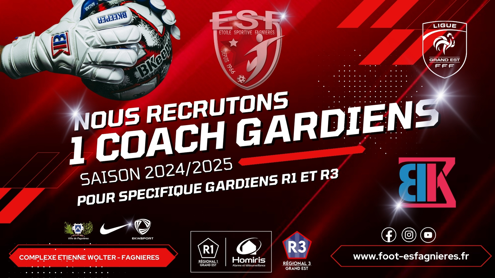 nous recrutons un Coach Spécifique Gardiens de but pour nos 2 formations Ligue, Régional 1 & 3, pour la saison 2024/2025.